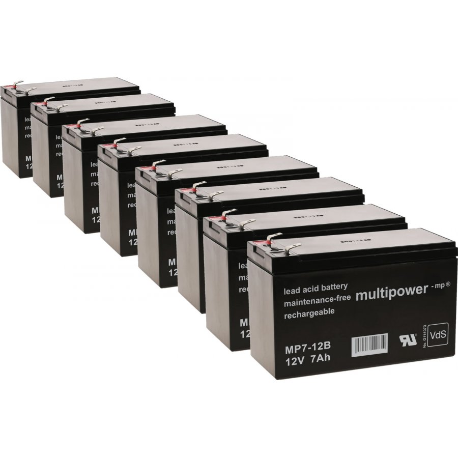 12V7AhLead-Acidpreto151mm x 65mm x 102mmMultipower4062438546082Conjunto de 8 baterias de chumbo, como mostra a imagem: sem cabos de ligação e sem caixa, as baterias existentes devem ser reutilizadas.