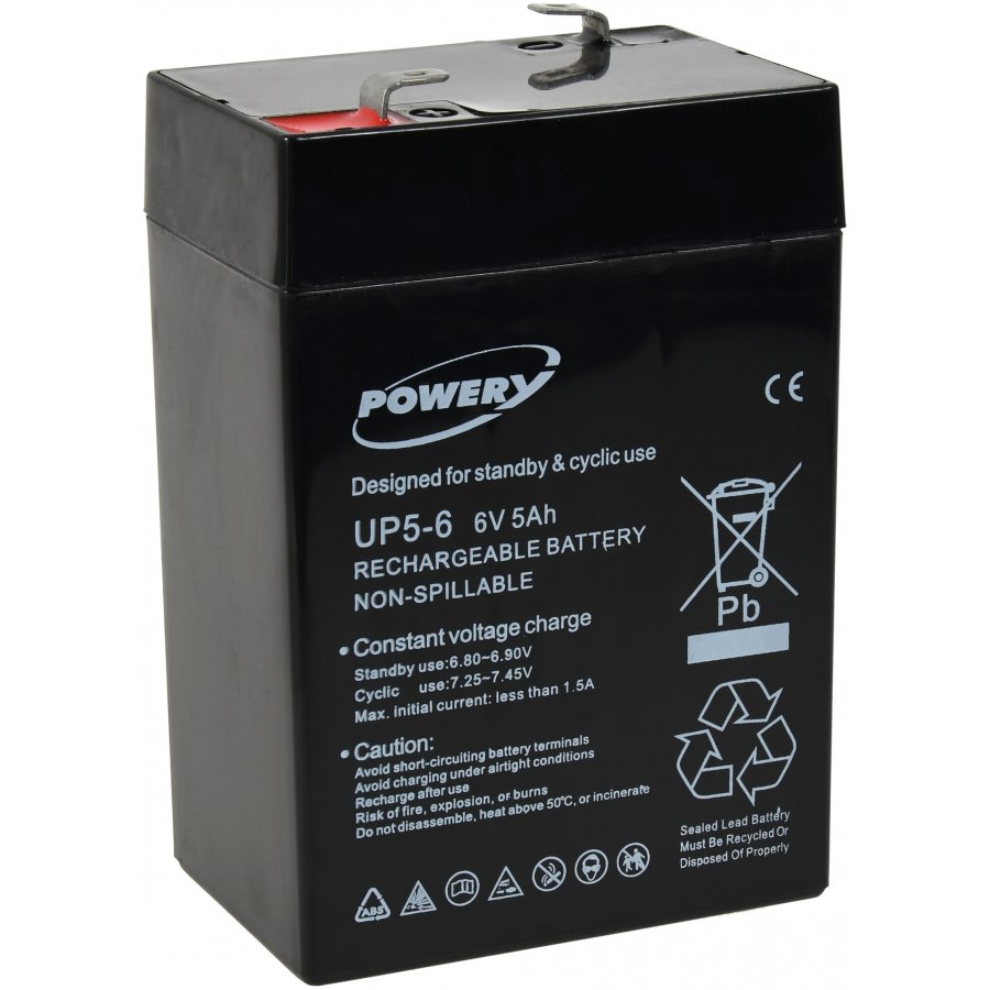 6V 5Ah/27Wh Lead-Acid preto 70mm x 47mm x 107mm Powery