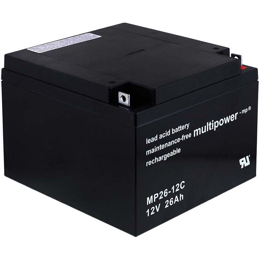 12V26Ah/312WhLead-Acidpreto166mm x 175mm x 125mmMultipower4062438101366Bateria de marca de alta qualidade sem manutenção. Especialmente concebidos para aplicações cíclicas tais como cadeiras de rodas, carrinhos ou caddies.